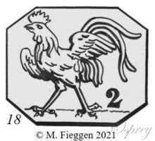 018. Running rooster hallmark to the left with number on the right