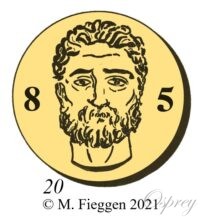 020. Hallmark of an old man’s head, facing, round frame