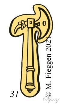031. Poinçon de hache à droite entourée d’un listel.